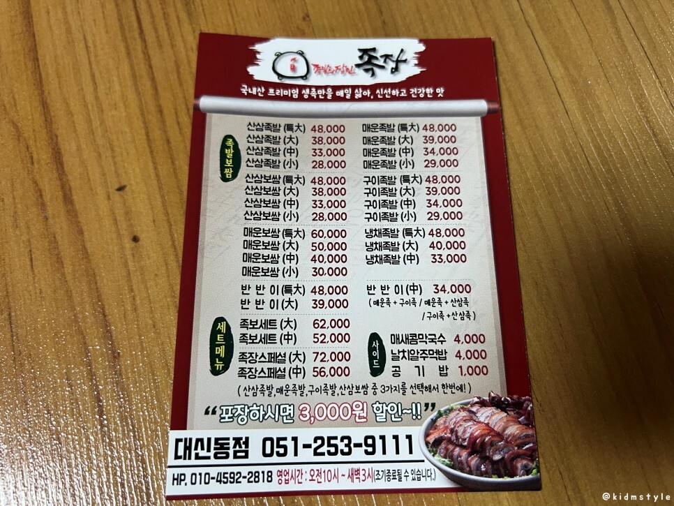바로 족발의 장인, 족장이라는 체인점의 족발이다. 본가에서 가장 가까운 매장이 대신점이다. 예전에 그곳에서 한번 배달의민족으로 주문해 드린 적이 있는데 아주 만족하시네. 물론 영심이 족발도 여전히 좋아하신다.