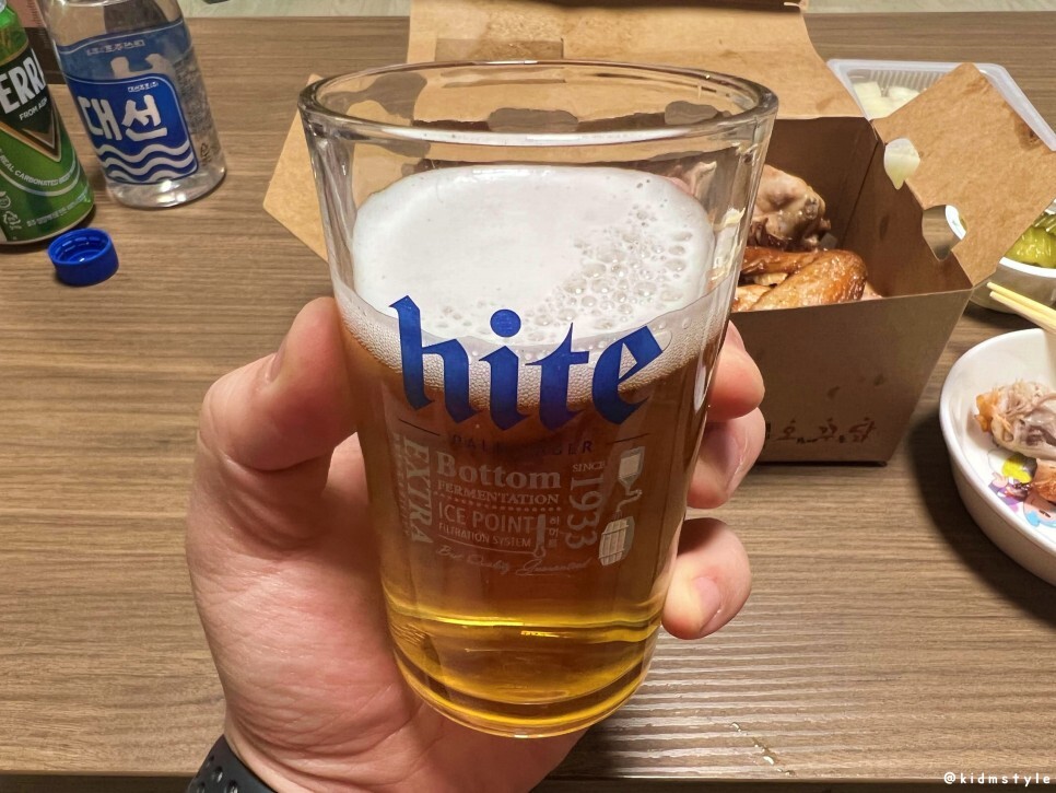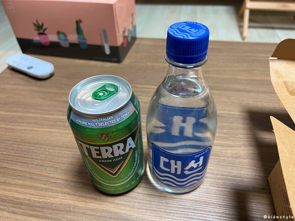 평소 밖에서 술 마실 때는 소맥보다는 소주, 집에서 마실 때는 소맥을 즐기는 편이다. 특히 치킨은 소맥으로 맛보면 꽤 맛있다. 부산 소주, 대선과 소맥 말기 좋은 테라로 준비해 본다.