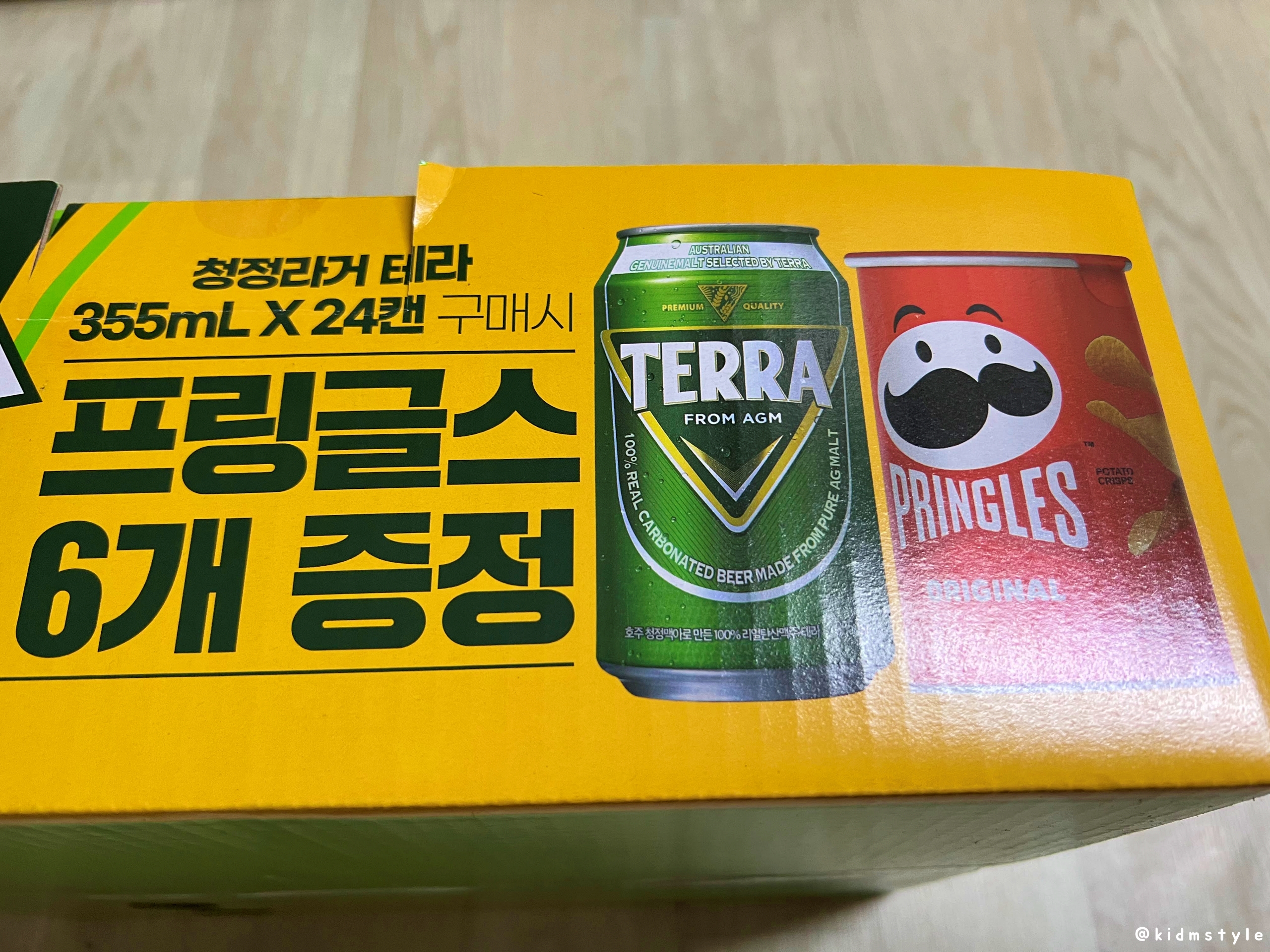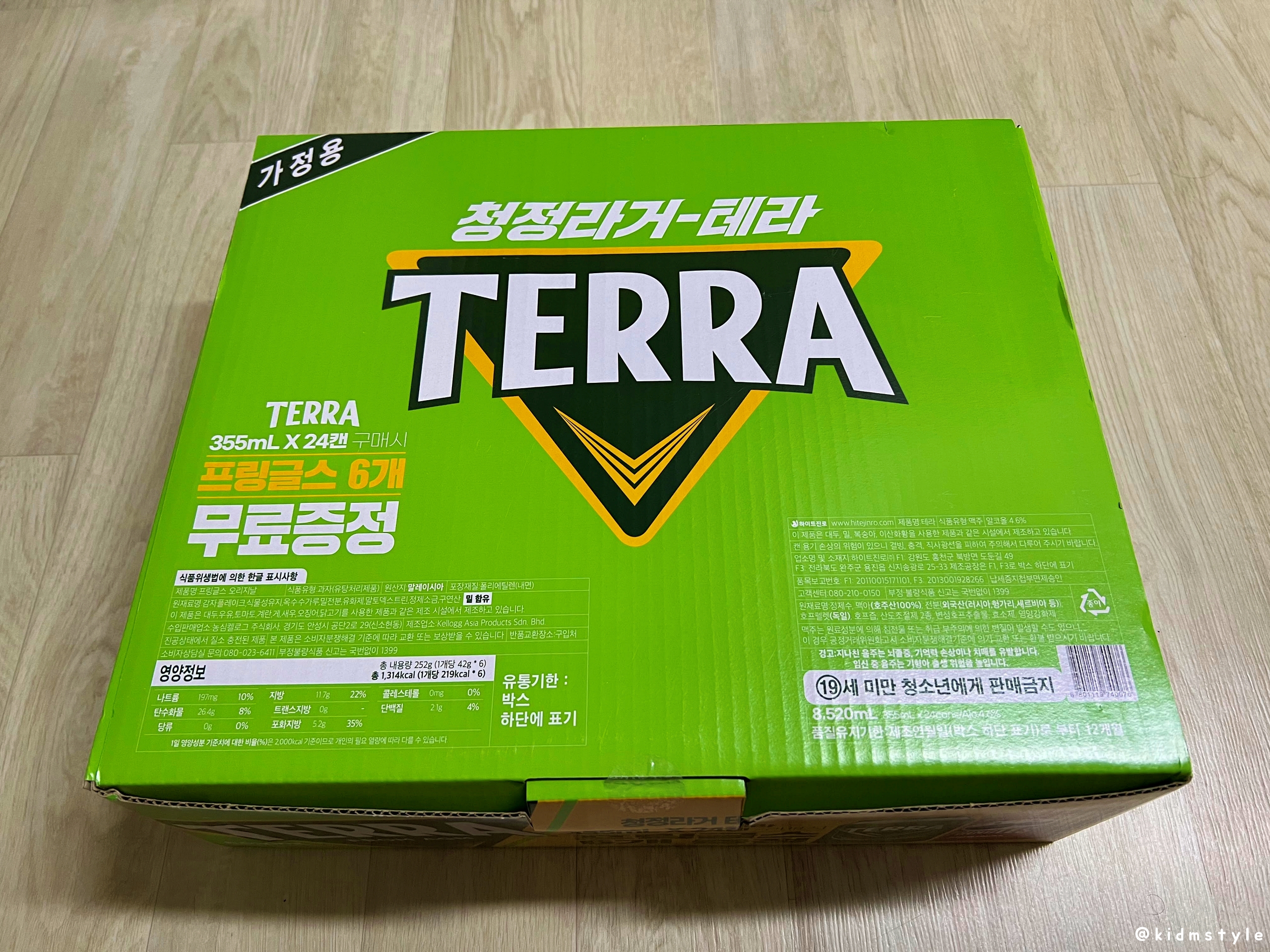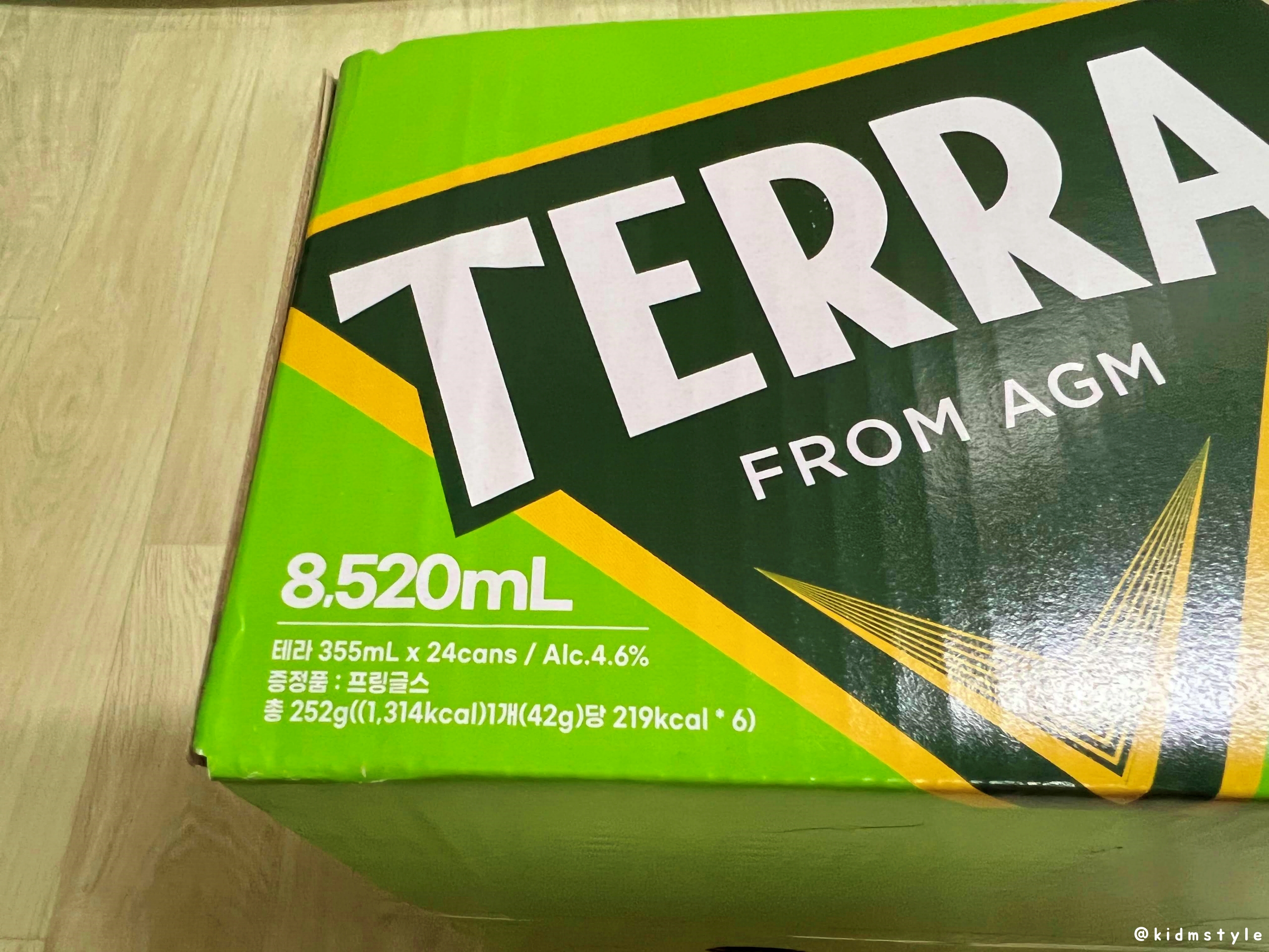 청정 라거 테라 terra 355ml * 24캔 박스이다. 수입 맥주도 즐기지만 기본적으로 테라를 재놓고 먹는 편이다. 소맥으로도 좋고 가볍게 한잔하기 딱 좋다.
