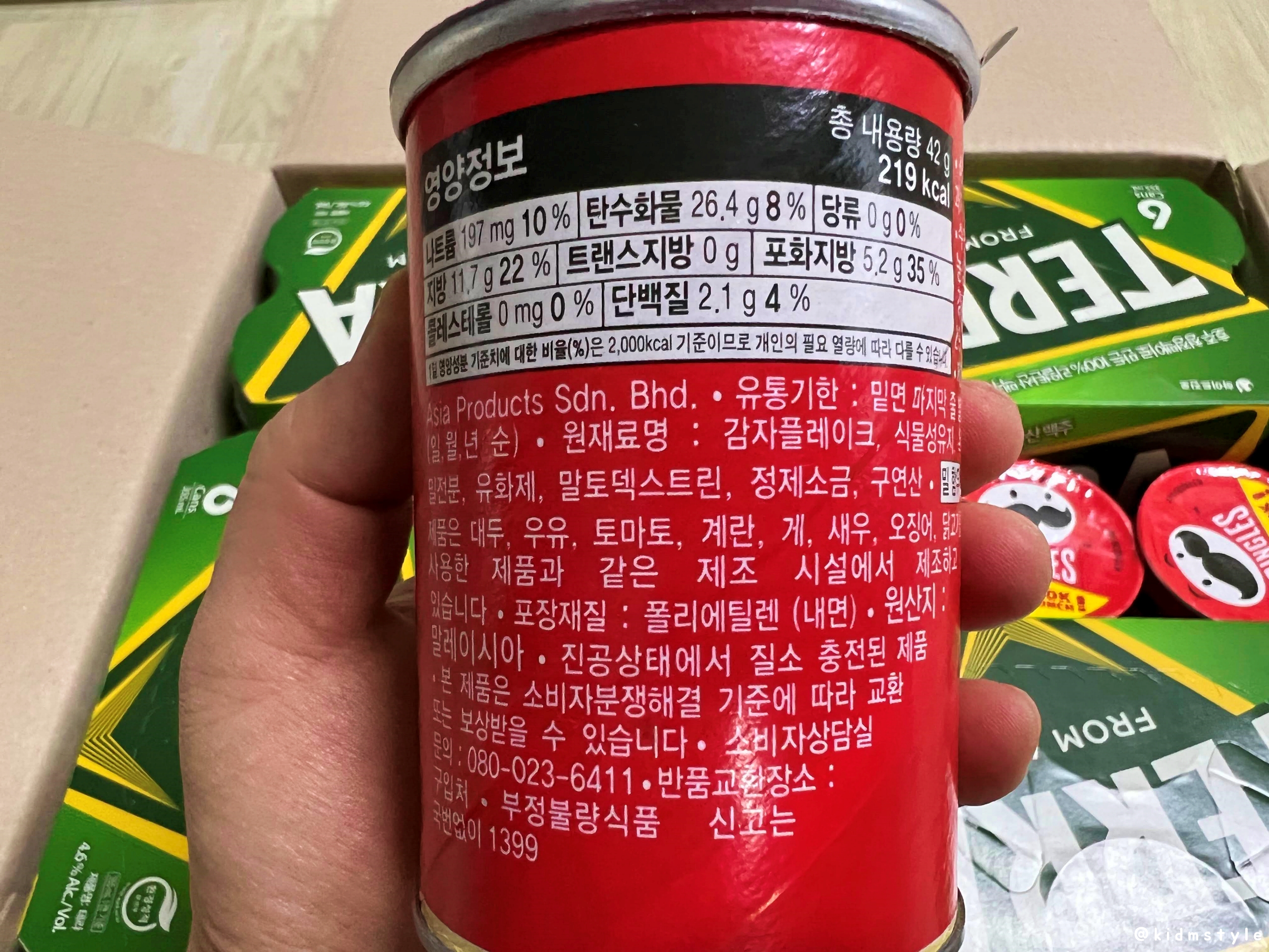 박스 안에 사은품으로 프링글스 작은 통 6개가 들어가 있다. 가성비가 좋은 편이다.