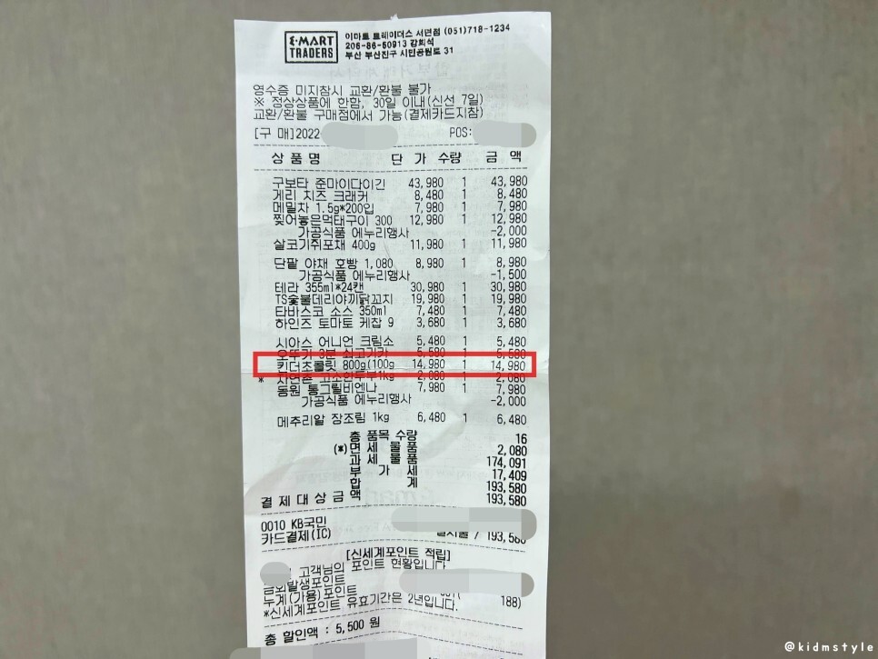 이마트 트레이더스에서는 대형마트답게 대용량 패밀리팩으로 판매하더라.