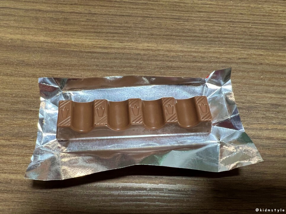 엄마들이 양을 조절해서 아이들에게 나누어 줄 수 있도록 작게 개별 포장으로 만들어진 킨더 초콜릿이다. 겉은 고품질 밀크 초콜릿, 속은 부드러운 우유 필링이라 아주 달달함을 제대로 느낄 수 있다. 단 것 잘 못 먹는 사람들은 하나 먹고 손사래 칠 수도 있겠다.