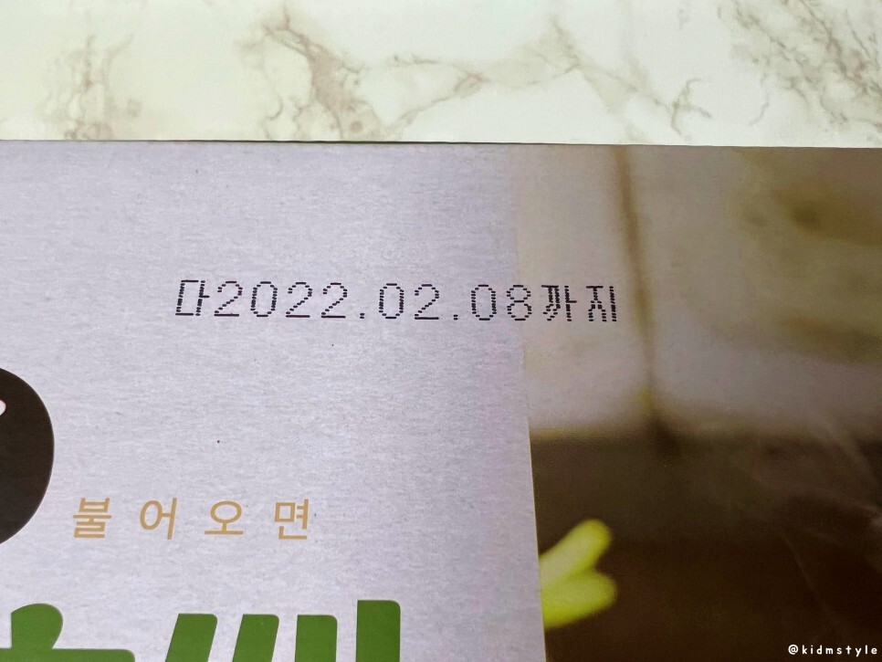 구입 시점이 1월 말인가 2월 초인데 유통기한은 짧은 편이다.