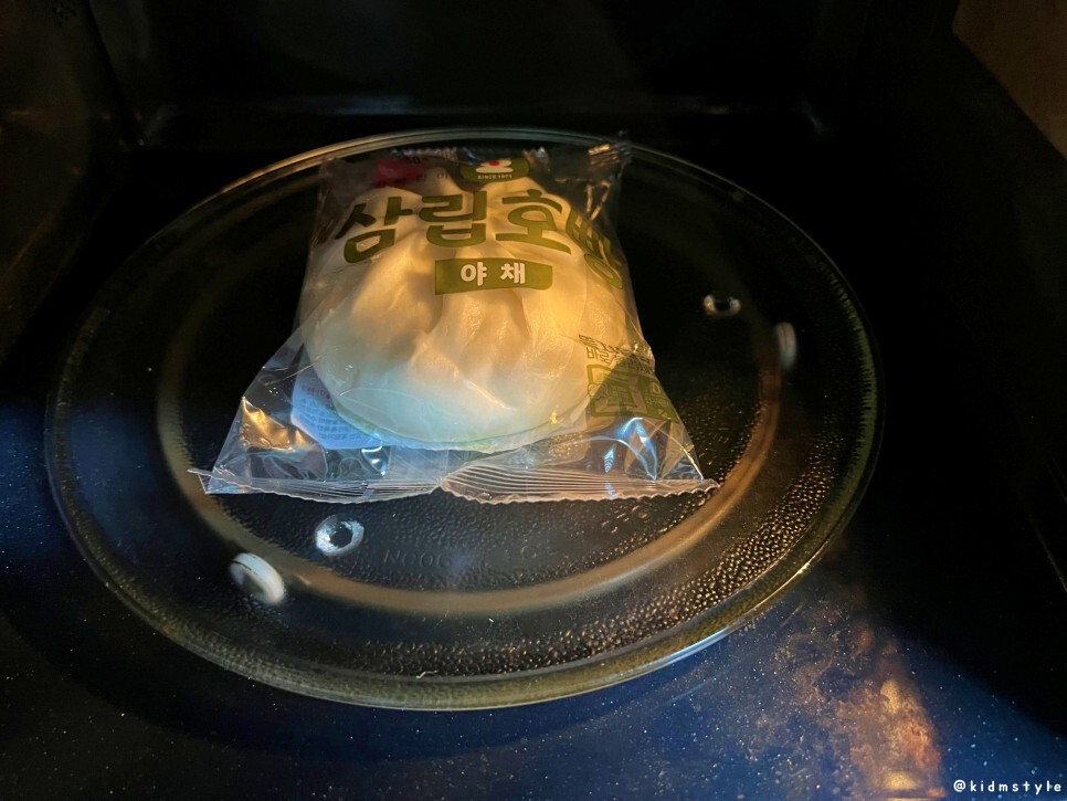 하나 맛을 보기로 한다. 전자레인지에 봉지 째 넣고 돌린다.
