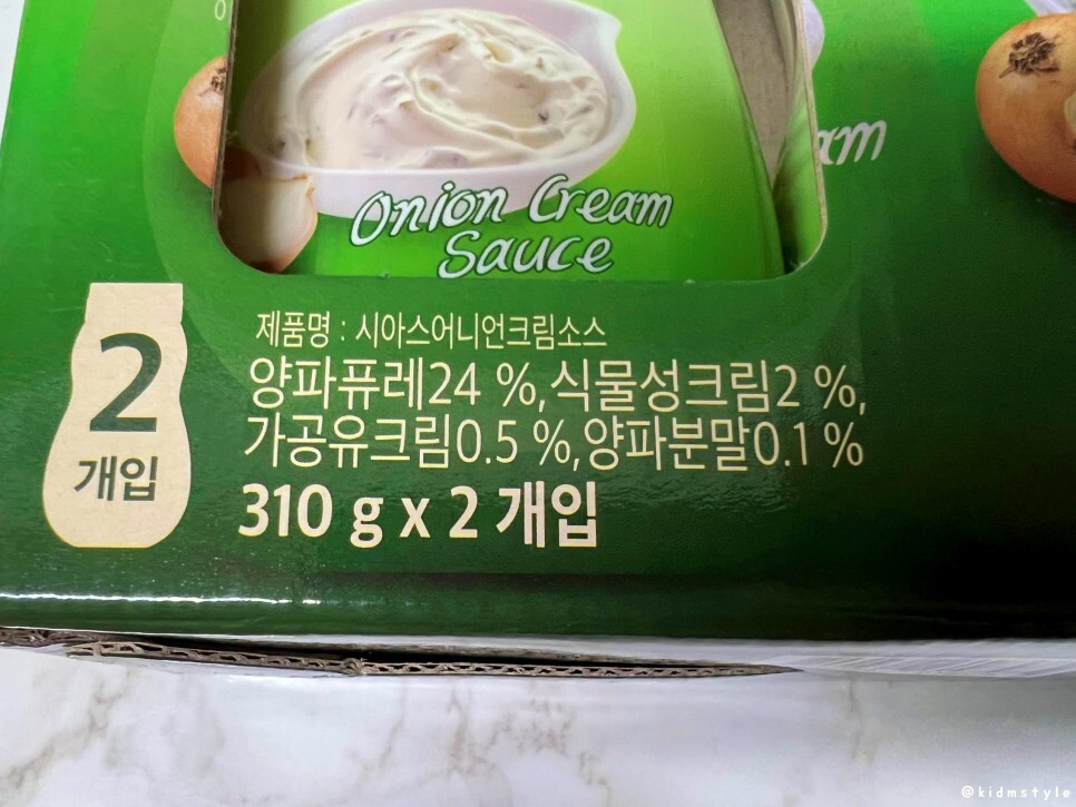 시아스 어니언 크림소스이다. 예전에 코스트코 한창 다닐 때는 맥코믹 어니언 크림소스를 사 먹었는데 이번에는 시아스 제품으로 사본다.