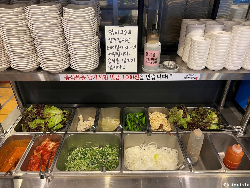 음식물을 남기면 벌금 3,000원을 받는다. 벌금을 떠나서 자주 먹을 만큼만 담아오는 게 정답이다.