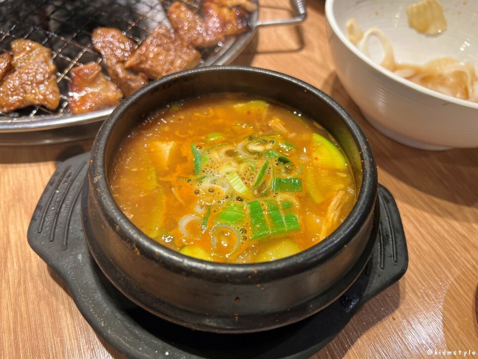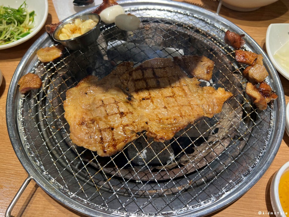 고기를 추가로 요청한다. 고기를 먹기 전에는 추가 요청 때 무조건 갈비를 요청할 생각이었는데 먹어보니 생각이 바뀌었다. 목전지가 부드럽고 더 맛있어서 추가부터 기본 제공되는 목전지를 받았다.