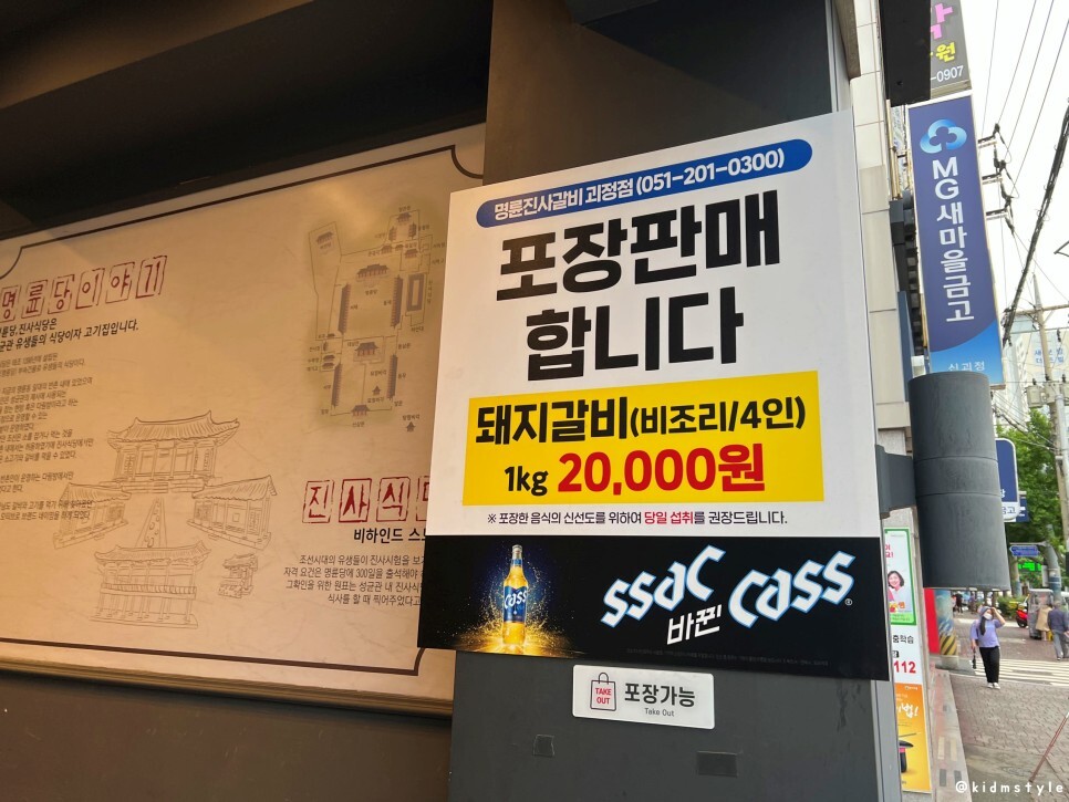 포장 판매도 하네. 돼지갈비 1kg에 20,000원이면 원산지야 어쨌든 가성비가 좋다.