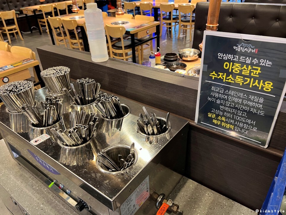 수저는 이중살균 수저소독기에 있으니 직접 필요한 만큼 가져가면 된다.