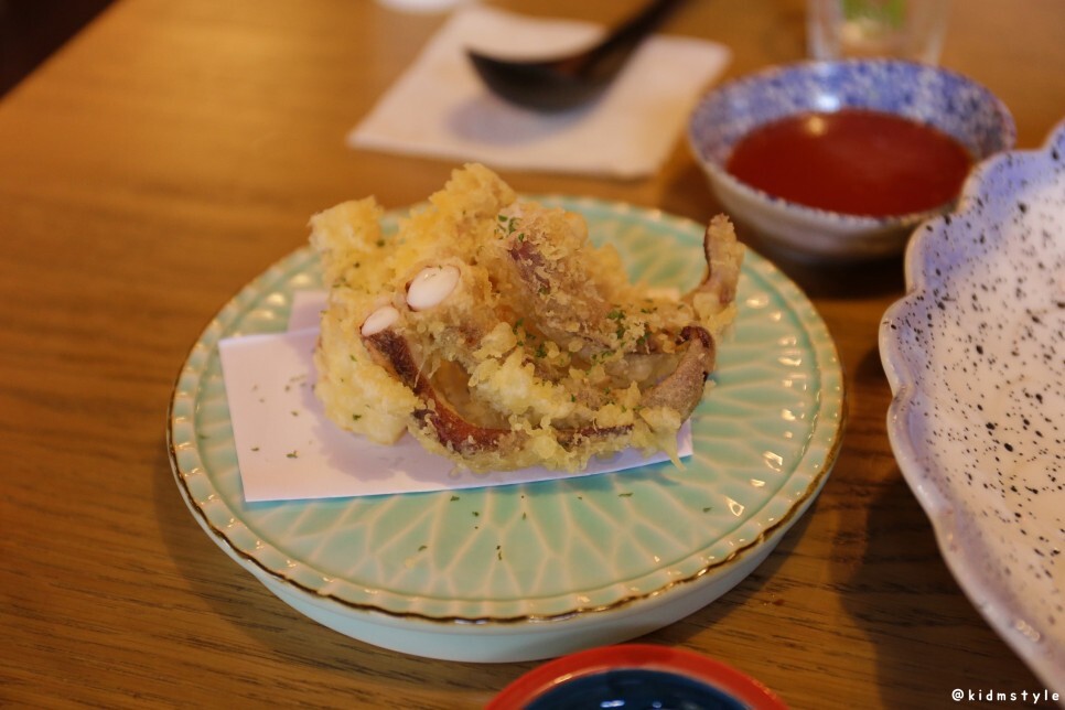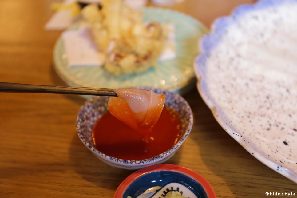 오징어 다리 튀김을 하나 집어서 맛보았다. 와~ 이집 튀김도 잘하네. 상당히 바삭한데 속살은 정말 부드럽다. 겉바속촉을 제대로 구현한 튀김이다. 참 마음에 든다. 다음에 오면 튀김 메뉴도 하나 주문해 봐야겠다는 생각을 바로 했다.