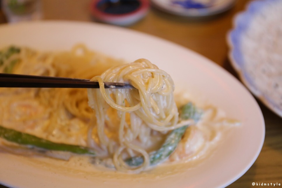 파스타 면은 딱 먹기 좋게 삶아졌다. 퍼지지 않고 덜 익혀지지도 않은 딱 먹기 좋은 상태이다. 한 입 맛보니 정말 맛있네. 파스타 좋아하신다면 이 메뉴 추천한다.