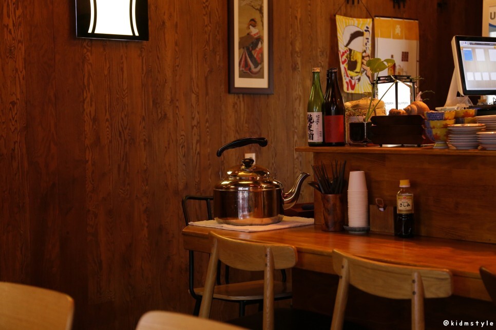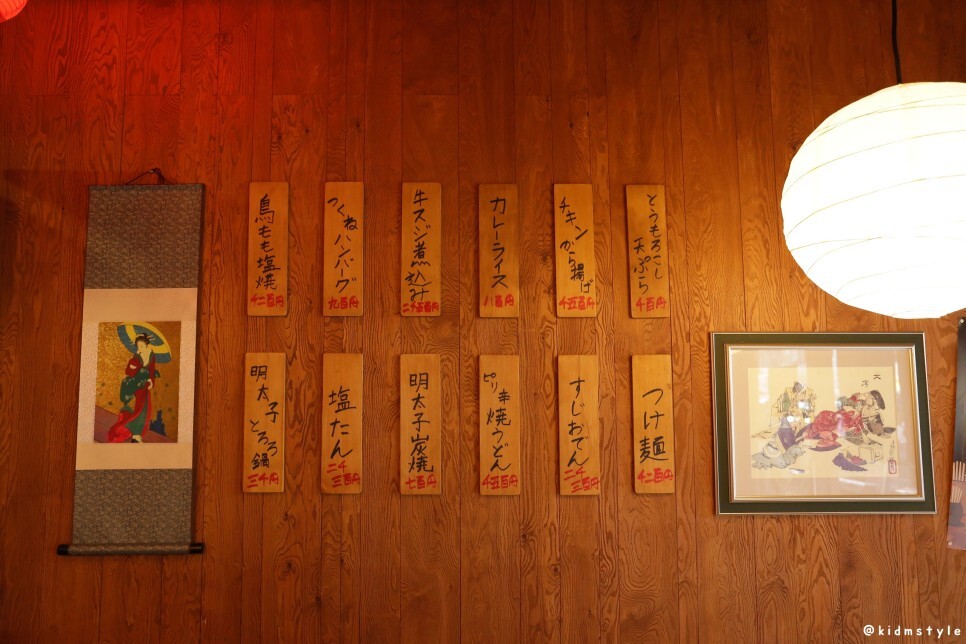 한쪽 벽에는 일본스러운 액자와 메뉴판이 걸려있다.