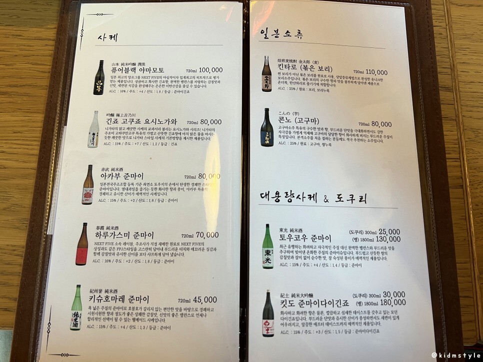 술은 다양한 사케를 취급하고