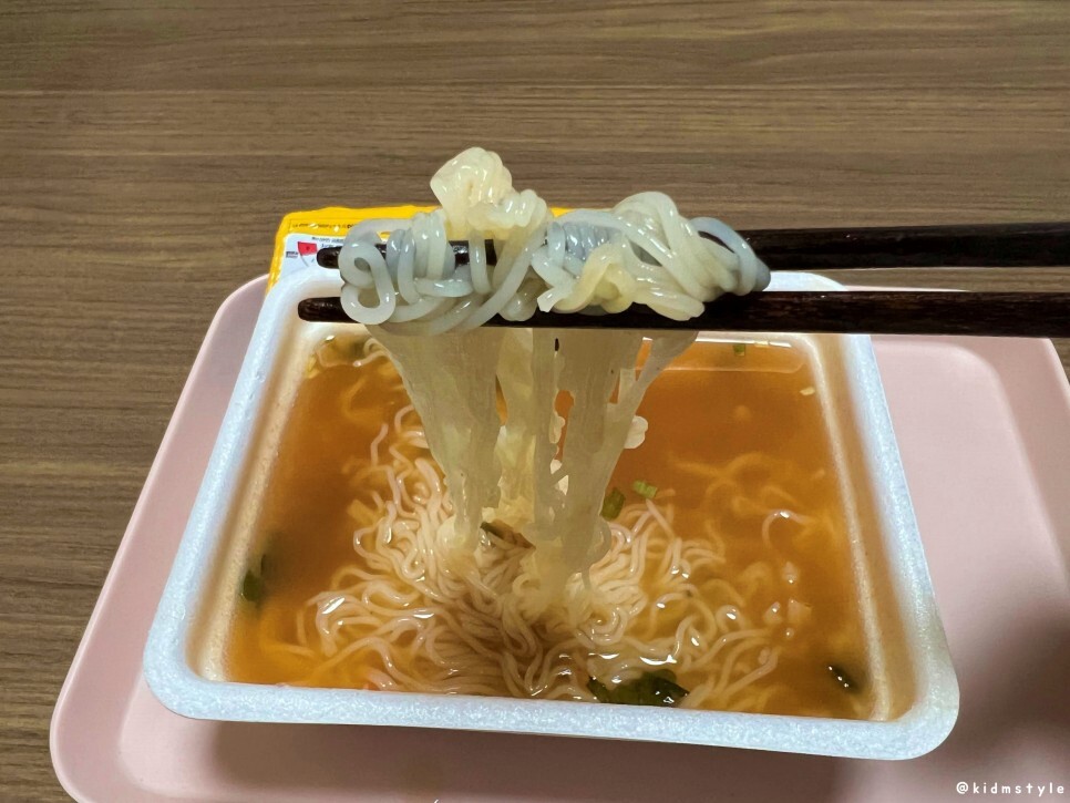 맛을 보니 노브랜드 제품 중에서 가성비가 꽤 괜찮은 제품인 것 같다. 끓는 물에 조리하니 면은 적당히 잘 익어서 먹기 좋게 퍼지고 국물은 의외로 얼큰한 맛은 조금 덜하다. 쌀국수 인기 제품인 백제 쌀국수 얼큰한 맛보다는 훨씬 차분한 느낌이다. 과하게 매콤하고 얼큰하지 않으므로 누구나 시도해 봐도 괜찮을 맛이다.