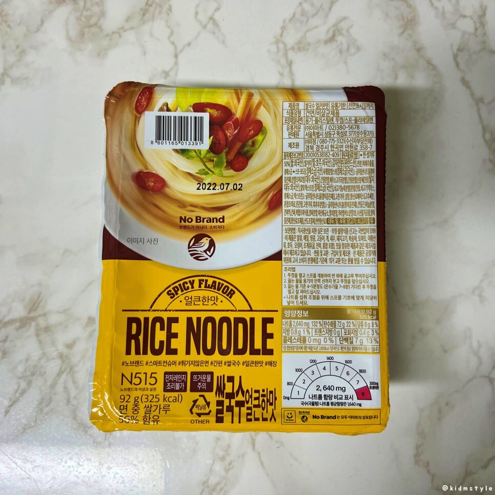 이마트 노브랜드 쌀국수 얼큰한 맛과 멸치 맛 두 가지를 구입했는데 우선 얼큰한 맛부터 맛보기로 한다. 가격은 980원이다. 다른 제품에 비해서 저렴한 편이다.