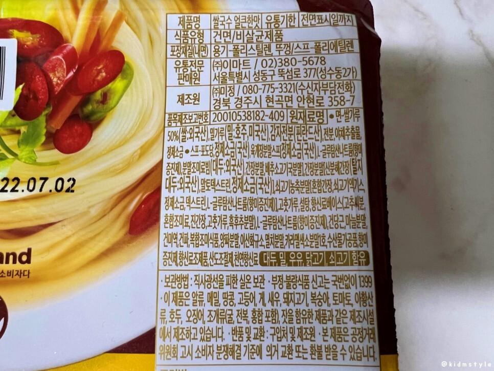 건면이다. 그리고 제조원은 경주에 있는 (주)미정이라는 곳이다. 미정? 많이 들어본 곳인데? 예전에 리뷰한 적이 있는 CJ 미정당 제품의 그 미정당이 맞네. 경주의 유명 식당 미정당이다.