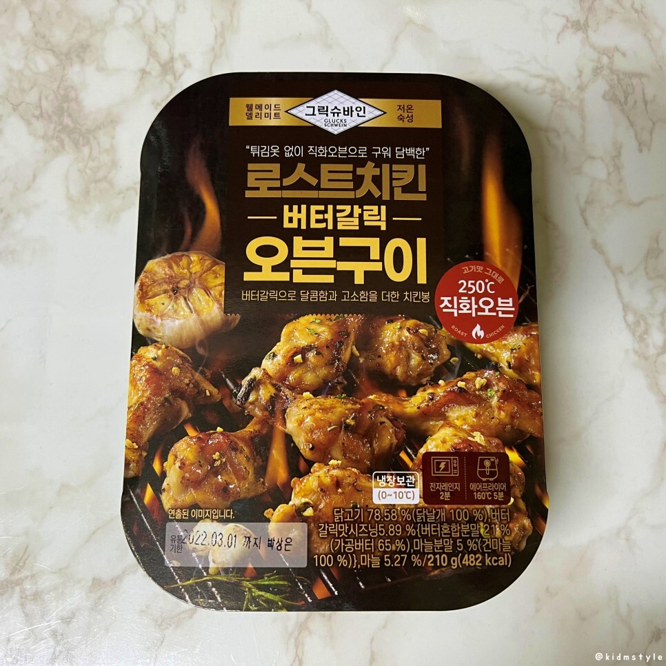 그릭슈바인 튀김옷 없이 직화오븐으로 구워 담백한 로스트치킨 버터갈릭 오븐구이 버터갈릭으로 달콤함과 고소함을 더한 치킨봉