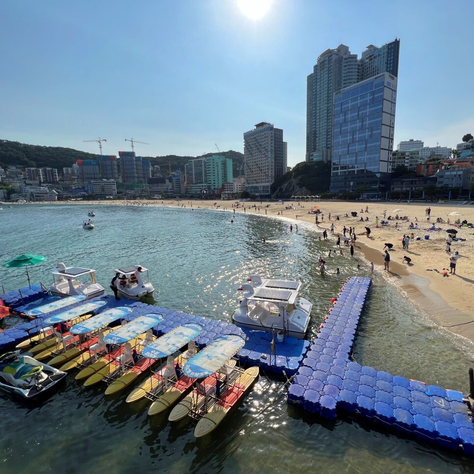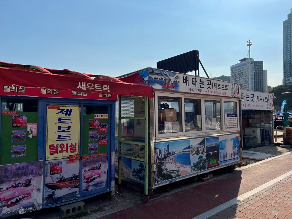 바다를 바라보며 오른쪽의 암남공원 쪽으로 걸어갑니다. 이곳에도 해상 레포츠를 즐길 시설이 있는데 개장에 맞춰 문을 열 것 같네요. 아직 준비 중인 모습입니다.