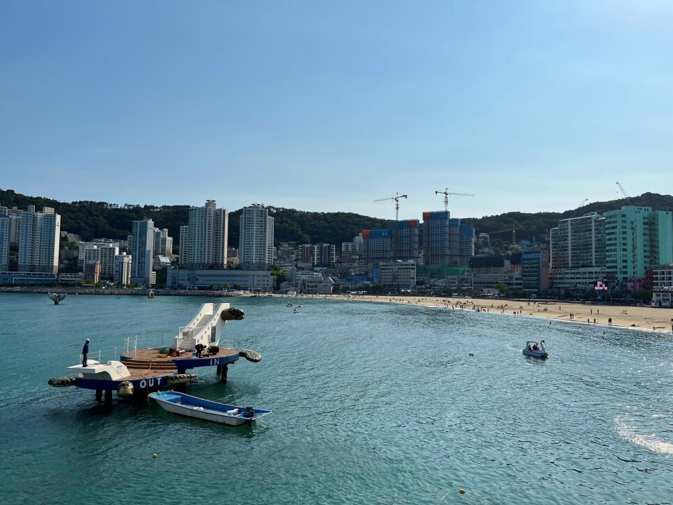 6월 말, 송도해수욕장의 풍경입니다. 벌써 물놀이를 즐기는 피서객들이 몇 명 보이네요. 최근에 생긴 전동오리배의 인기가 정말 많더군요. 대기하는 손님이 꽤 많았습니다.