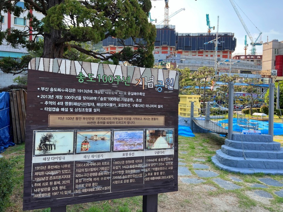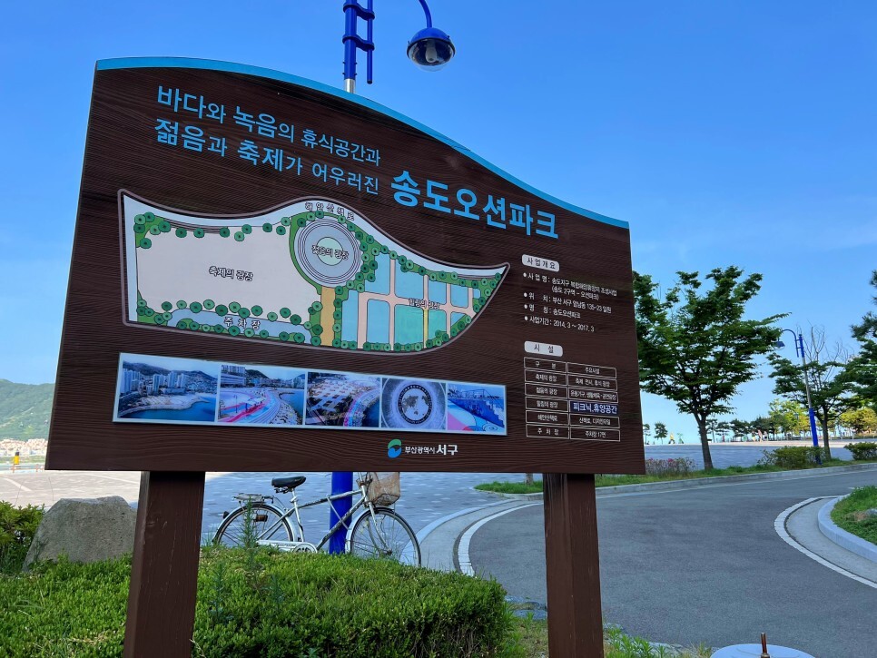 그리고 해변 산책로 한쪽에는 작은 공원이 있는데요. 송도해수욕장 개장 100년을 기념하여 만든 송도 100주년 기념공원입니다.
