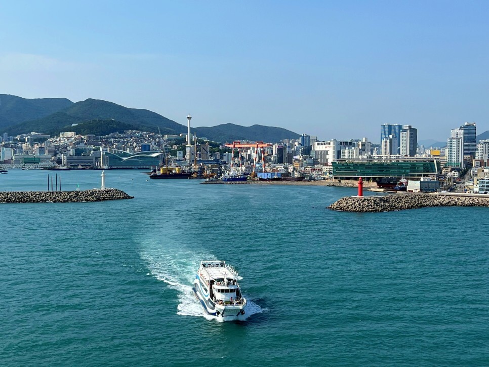 남항대교 위를 걸으며 시원한 부산 원도심의 풍경을 담아봅니다. 때마침 자갈치크루즈가 지나가네요.