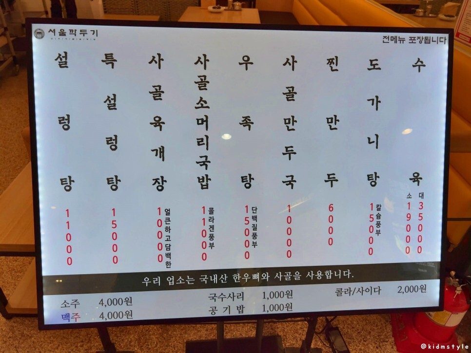 이것도 글 쓰면서 이제야 제대로 봤네. 이 집은 우리가 아는 그 서울깍두기가 아니다.프랜차이즈의 한 업체네.