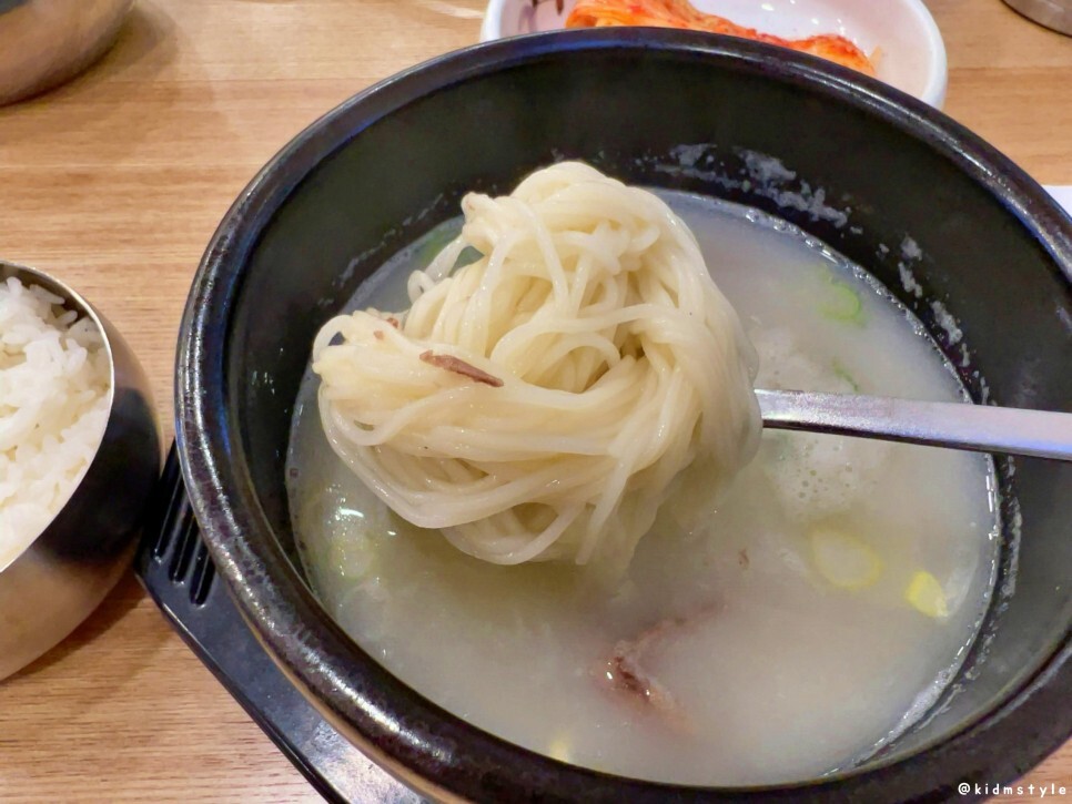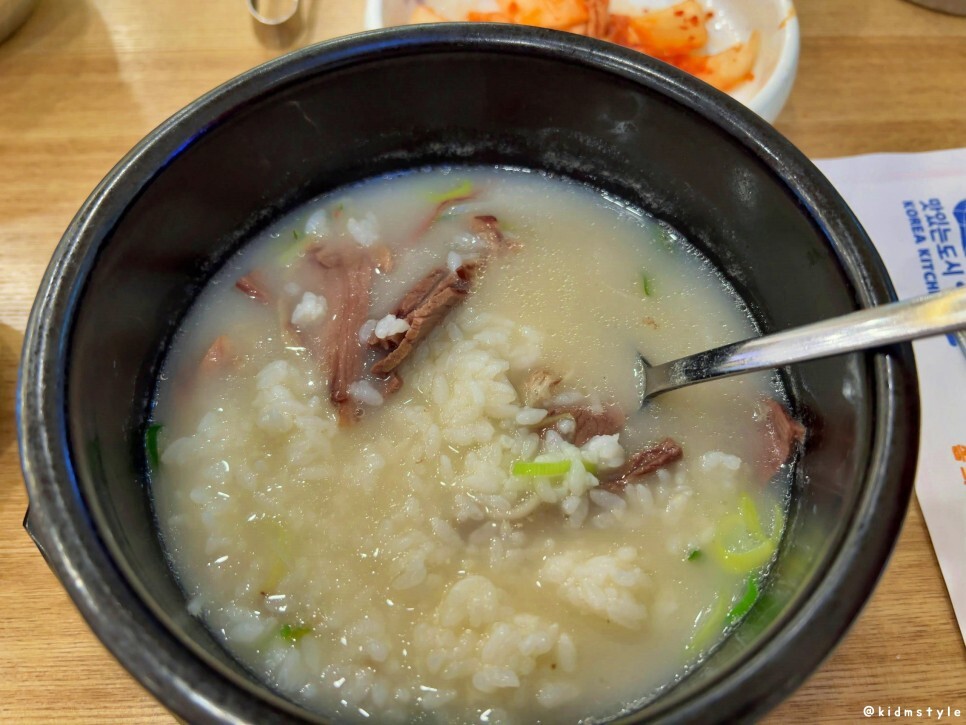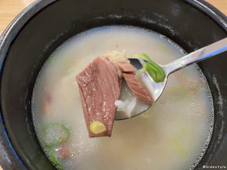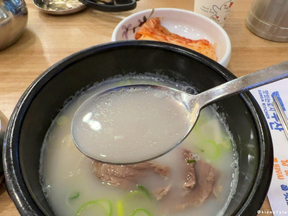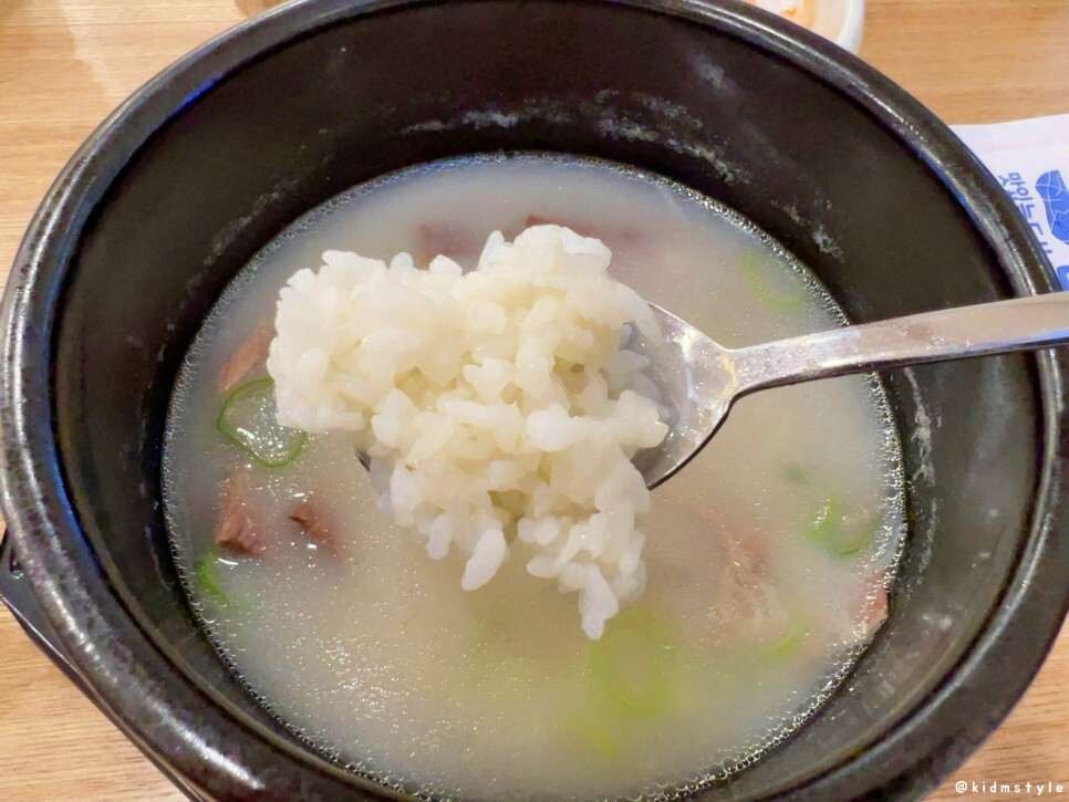 추운 날이라 밥도 한 숟가락 떠서 국물에 담갔다가 맛본다. 사골국물이다.