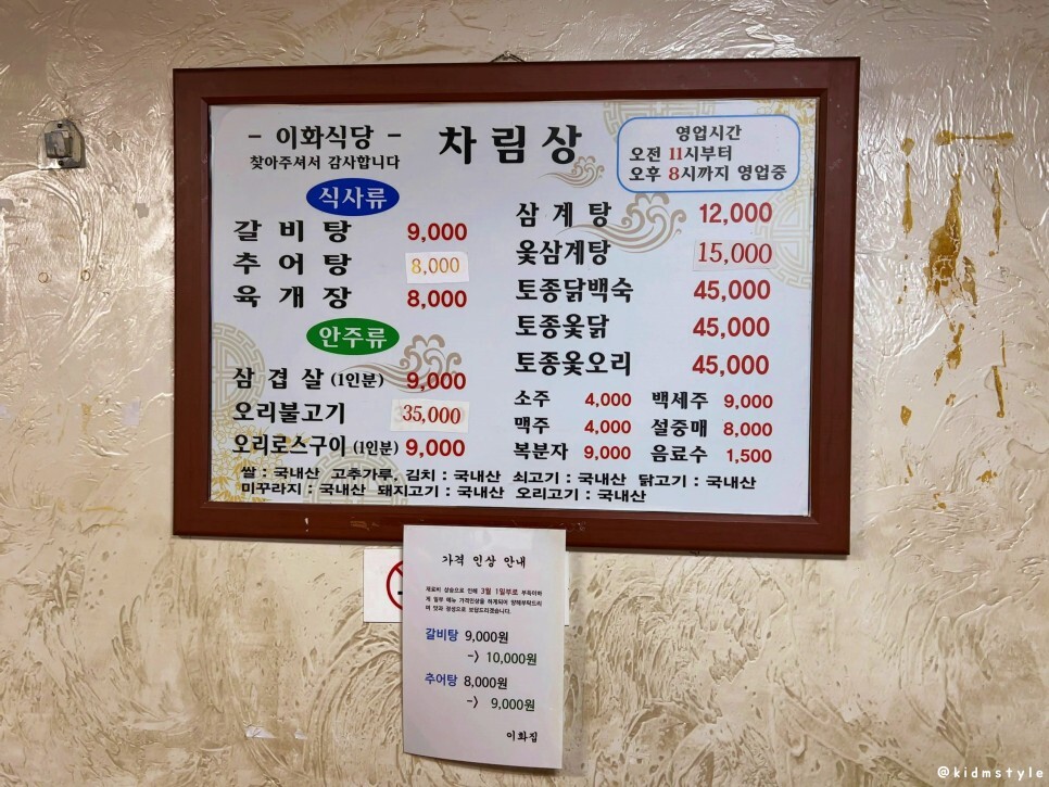 작은 골목에 들어서니 커다란 간판이 마주한다. 이화식당, 어떤 맛을 보여줄지 궁금하다.