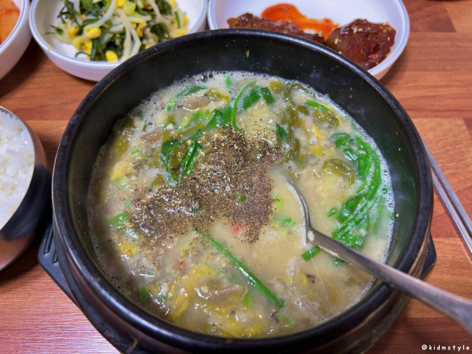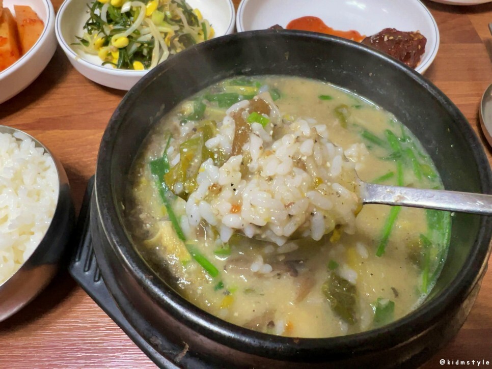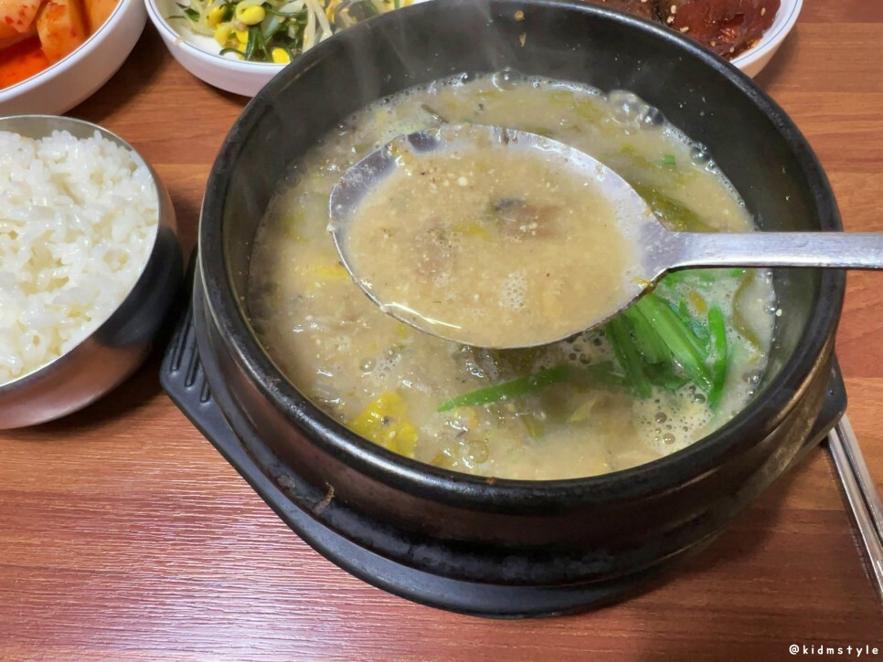 밥을 한 숟가락 떠서 국물에 적시고 맛을 보니 참 맛있다. 맛에 대한 표현은 딱히 할 게 없다. 그냥 맛있다.