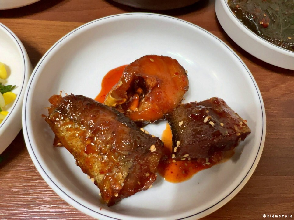 코다리조림이다. 다 먹고 추가로 요청했다. 간이 딱 좋아서 초빼이도 아닌데 대낮부터 소주가 생각나더라. 쫄깃한 살을 파먹고 있으니 힐링이 된다.