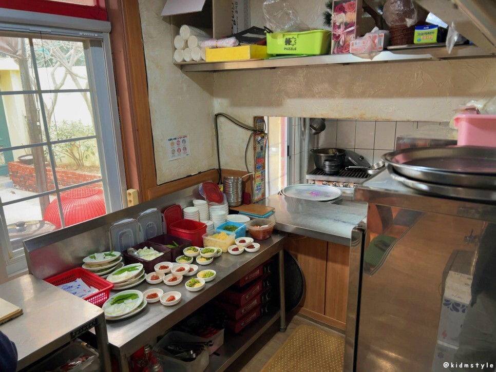 주방 쪽을 잠깐 찍어본다. 점심 손님이 몰리는 것을 대비해서 미리 준비해놓은 모습이 인상적이다. 11시 반쯤 지나니 손님이 물밀듯이 밀려오더라.