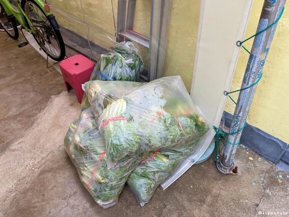 먹고 나오면서 마당에 보니 신선한 재료들이 공급되고 있는 현장을 목격한다.