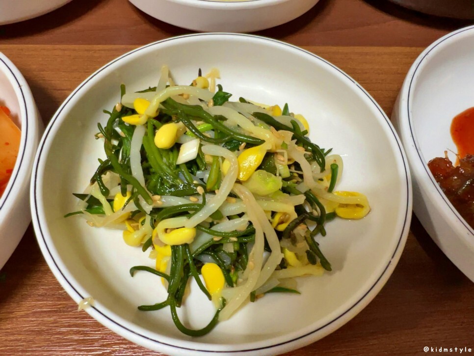 톳나물과 콩나물의 만남이다. 영도답게 해초 하나쯤은 기본이다. 이것 역시 간이 좋아서 계속 들어가네.