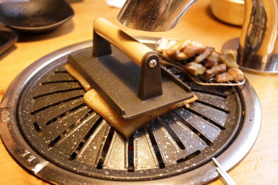 고기를 바싹 굽지 않고 적당히 구워주는 점이 특징이다. 그 이후는 취향껏 구워 먹으면 된다. 천천히 먹고 싶으면 고기 받침틀 위에 올려놓고 먹어도 되고 아무튼 괜찮은 방법인 듯.