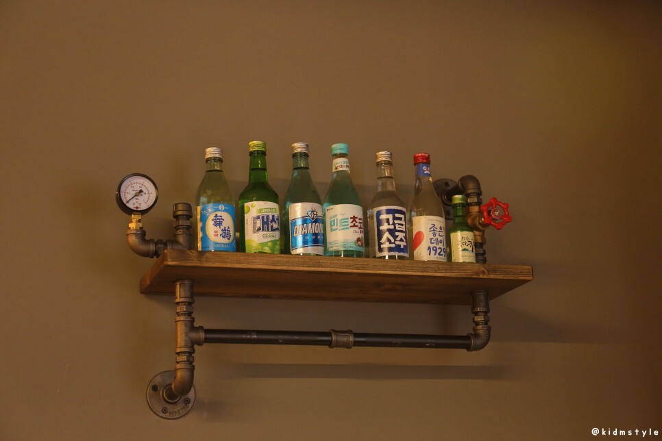 다른 한쪽에도 와인병이 걸려있다. 인테리어가 꽤 괜찮아 보인다. 뭔가 소주보다는 와인이 어울릴 것 같은 고깃집이다. 점점 궁금해지는데?