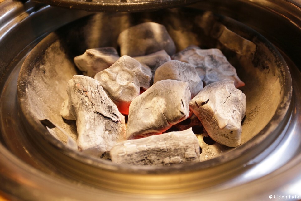 참숯이 들어오고 본격적으로 집게 마스터의 실력을 발휘하려고 했는데 이 집은 직접 구워준다고 하네. 그리고 사장님이 직접 구워주신다길래 집게를 살포시 내려놓았다.