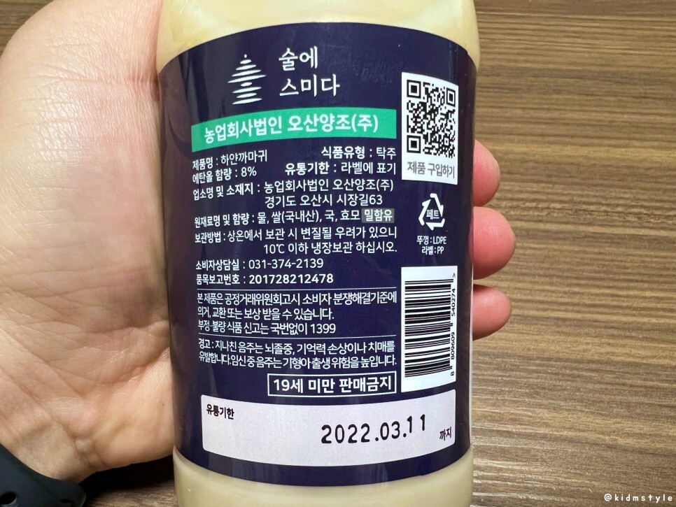 5도짜리 탁주이다. 이름부터 귀여운 술이다. 탁주치고 용량도 350ml로 앙증맞다.