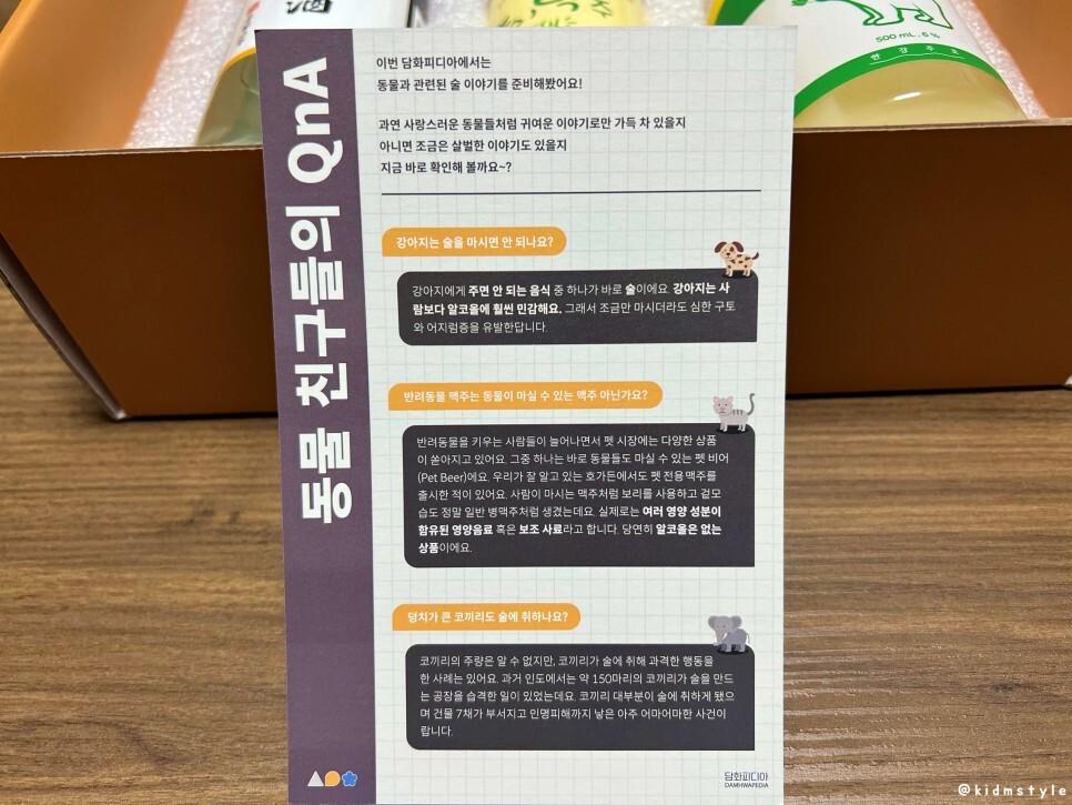 동물 친구들의 qna라는 재미있는 카드도 들어가 있다.