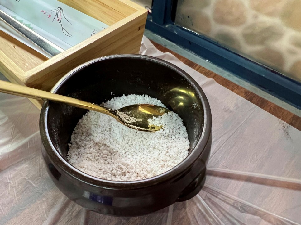 앞서 소개한 천일염 구운소금이 테이블에 놓여있네요.