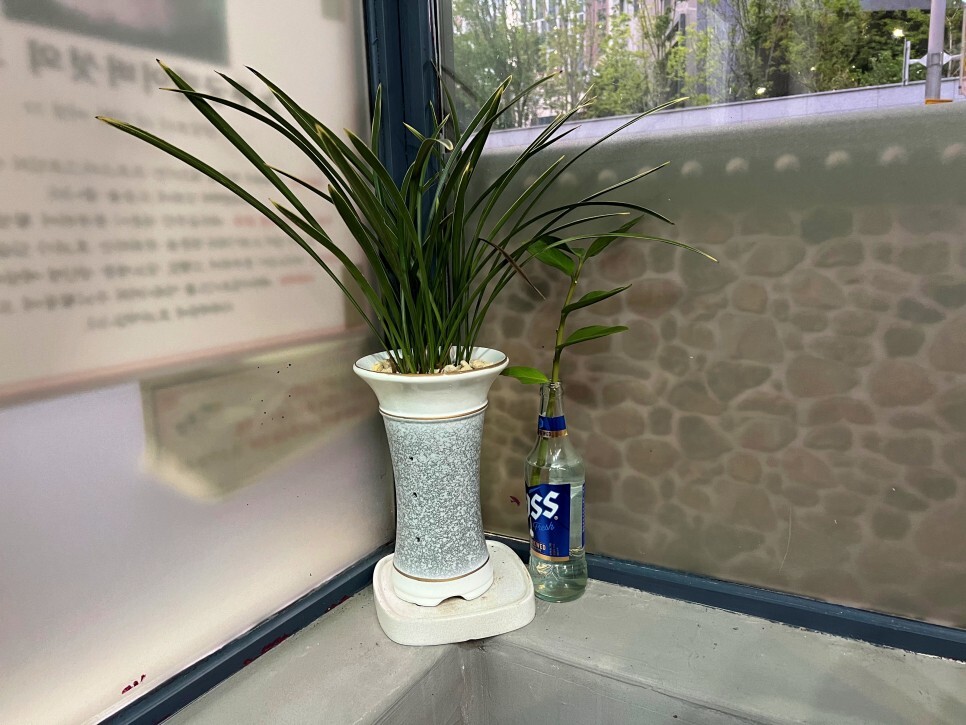 맛있게 먹고 한쪽을 바라보니 귀여운 맥주병 화분이 눈에 들어옵니다. 센스 있네요.