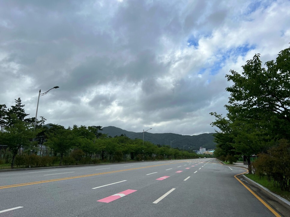 휴일이라 차가 거의 다니지 않는 공원 내 도로