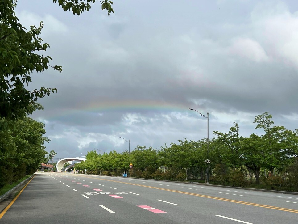 렛츠런파크 부산경남 이대를 걷는 중 반가운 무지개를 만났다. 정말 잠깐 몇 분만 생겼다가 사라지더라. 아까 행운의 문이 행운을 준 게 분명하다. 보기 힘든 무지개를 봤으니 소원 하나 빌어야겠다.