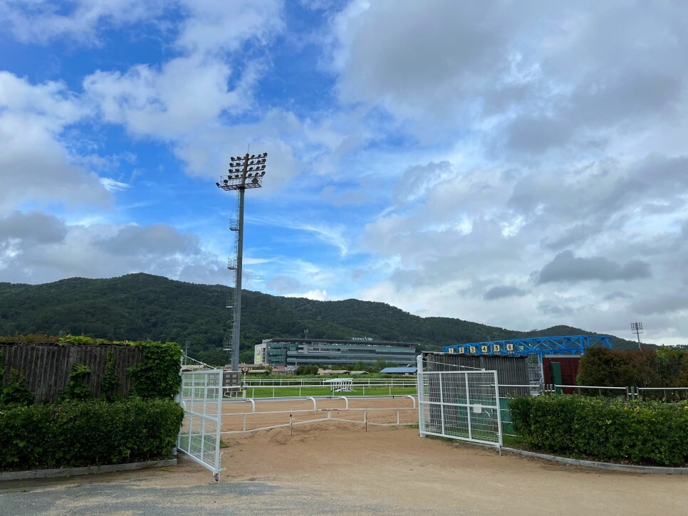 경마장 주변을 걸으며 다양한 풍경들을 담아본다. 맑게 갠 하늘과 탁 트인 경마장의 모습이 정말 잘 어울린다. 장마철 비 오는 날에 찾아왔는데 이런 풍경을 담을 수 있다는 건 참 기분 좋은 일이다.