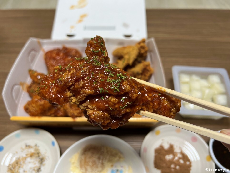 블랙킹 소스도 맛본다. 푹 찍어서 맛보니 짭짜름한 간장 소스에 고추씨 등이 들어간 블랙킹 소스도 매력 있네. 다음에는 블랙킹 치킨을 한번 맛봐도 괜찮을 것 같다. 술안주로 괜찮아 보인다.