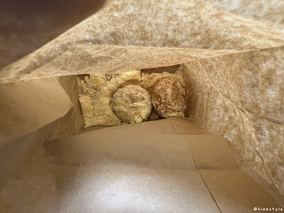 치즈볼에 뿌려 먹는 허니버터 시즈닝이 제공되더라.