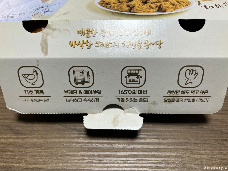 가장 맛있는 온도 165도로 튀겨 다음날까지 바삭한 치킨이다.