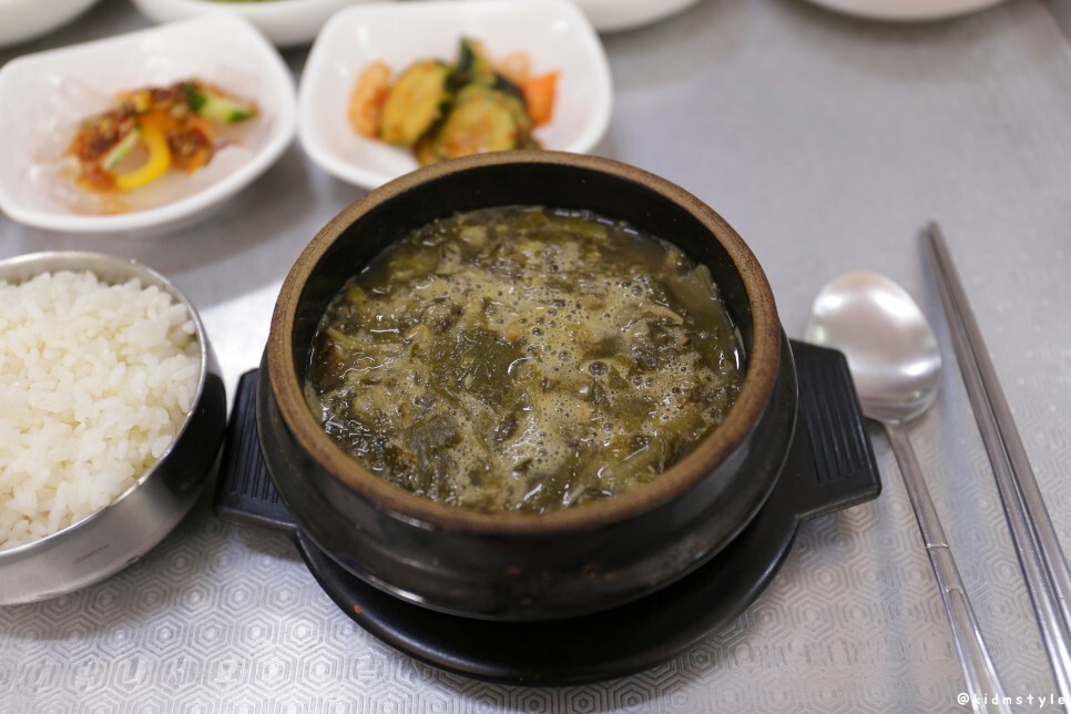 국을 맛보니 들깨가루가 들어가지 않은 깔끔한 스타일인데 은은하게 올라오는 된장의 맛과 향이 예사롭지 않다.
