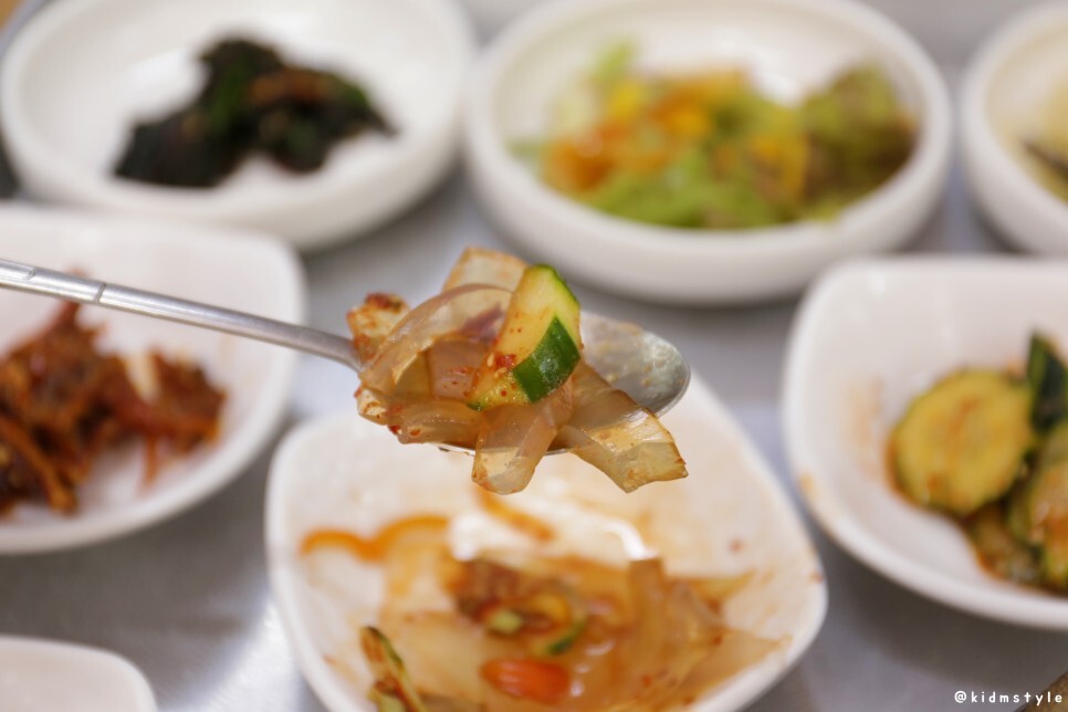 직접 담근 김치는 참 시원하다. 겉절이로 담은지 며칠 된 것 같은데 젓갈향이 과하지 않은 시원한 부산 스타일의 김치이다. 손맛을 제대로 느낄 수 있는 부분이다.