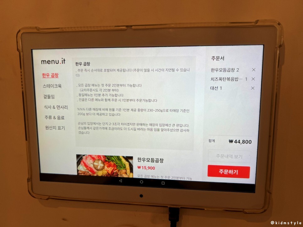 주문은 태블릿으로 하면 된다. 사진이 나와있기 때문에 주문이 크게 어렵지 않다.