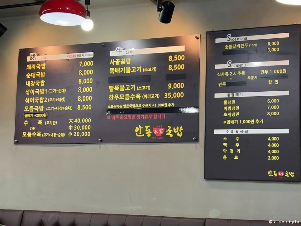 메뉴판이다. 원래 이 체인점이 안동 장터국밥인 소고기 장국밥을 한다고 해서 기대를 했는데 안 하는가보다. 아쉬운 마음에 순대국밥 (8,000원)으로 주문해 본다. 3월 메뉴판이라 지금은 가격이 올랐을 가능성이 크다.